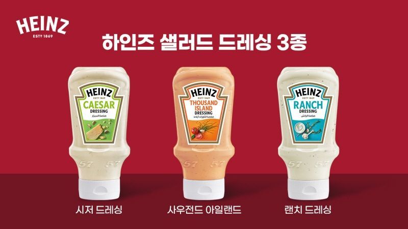 글로벌 식품 브랜드 하인즈가 ‘사우전드 아일랜드 드레싱’, ‘시저 드레싱’, ‘랜치 드레싱’ 프리미엄 샐러드 드레싱 제품 3종을 출시한다고 밝혔다.
