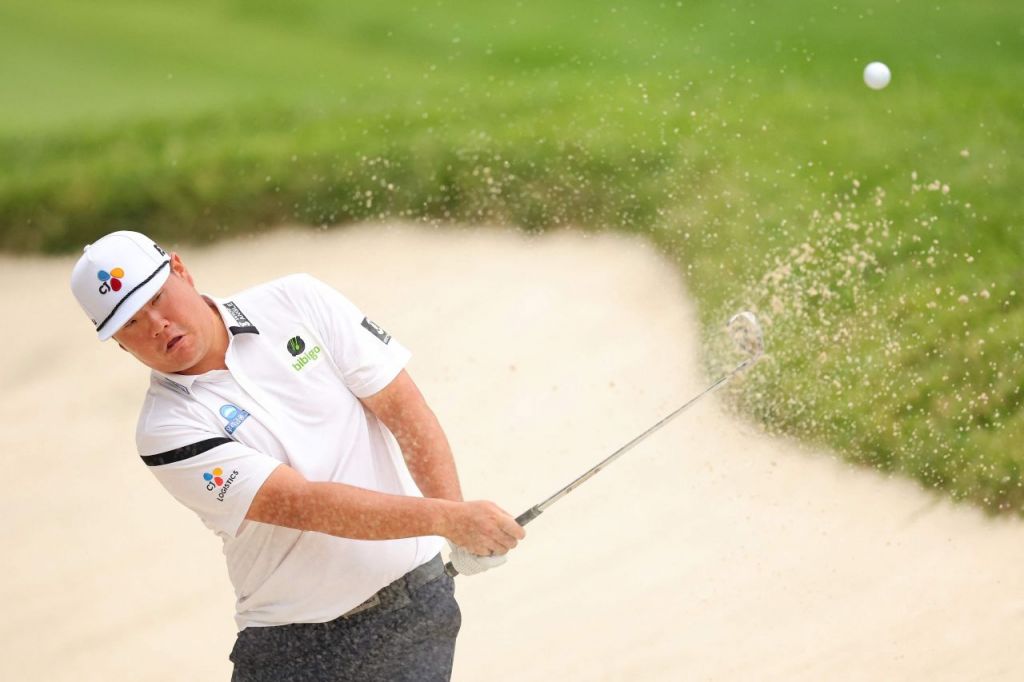 임성재가 존 디어 클래식 4라운드 9번 홀에서 벙커 샷을 하고 있다.[실비스(미국)=AFP·연합뉴스]