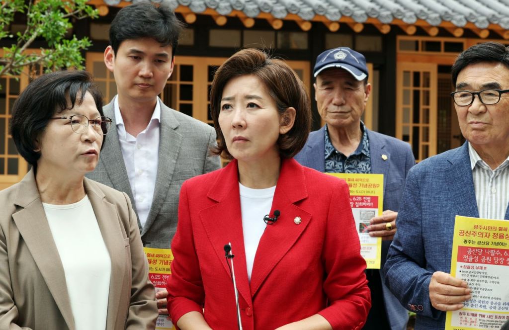 나경원 국민의힘 당대표 후보가 8일 오전 광주 동구 불로동에 있는 정율성 생가를 둘러보고 있다.