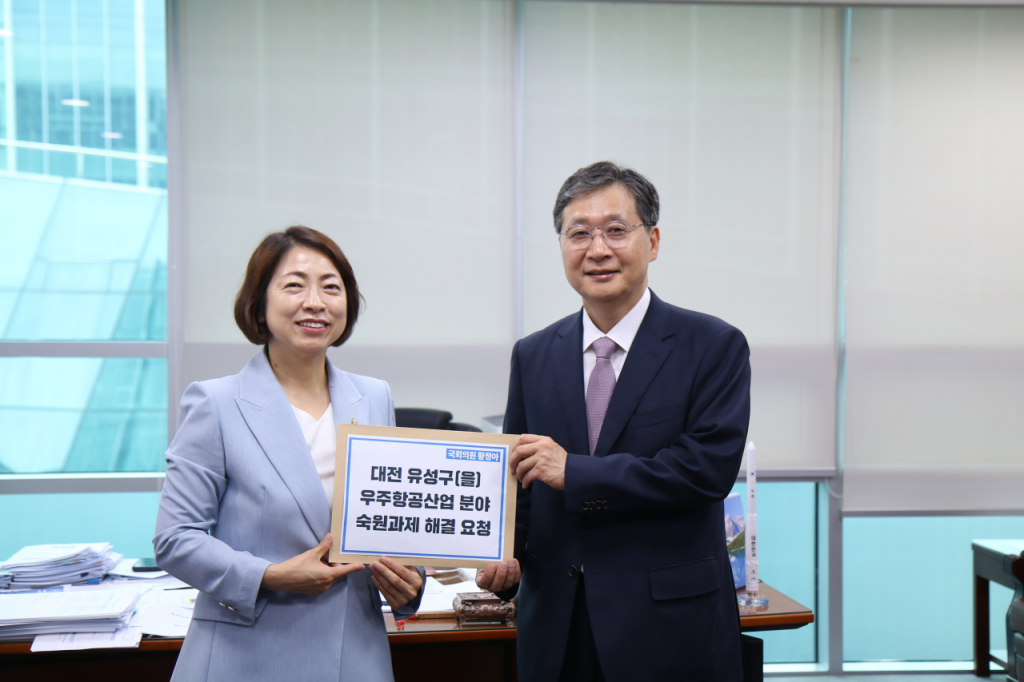 더불어민주당 황정아 의원(대전 유성구을)은 9일 오전 국회 의원회관에서 윤영빈 우주항공청장을 만나 우주항공청 연구개발본부 대전 유성 신설을 요청했다고 밝혔다.