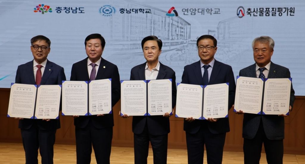 도는 9일 도청에서 충남대, 연암대, 축산물 품질평가원, 한국종축개량협회와 '힘쎈 선진 축산업 발전 업무 협약식'을 맺고 축산업 발전 선진화를 위해 상호협력하기로 했다.