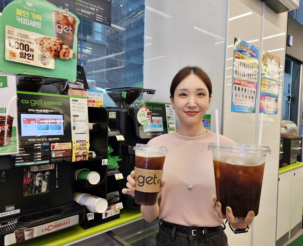 CU가 편의점 즉석 커피 중 최대 용량인 1240ml 초대형 겟(get) 아이스 아메리카노 2XL를 출시한다. 가격은 2800원이다. 유명 저가 커피 전문점에서 판매하는 960ml 아메리카노 가격이 3000원인 것과 비교하면 100ml당 가격은 25% 이상 저렴하다. 2XL이라는 상품명에서 알 수 있듯이 일반 get 아이스 아메리카노보다 에스프레소가 2배가 더 들어간 총 4샷으로 완성된다. 컵얼음도 특대형 사이즈인 650g 더 빅 아이스컵을 사용한다. 해당 컵얼음은 국내 유통사 통틀어 가장 큰 컵얼음 상품으로, 얼음이 잘 녹지 않도록 특수 제작된 플라스틱 컵에 첨단 제빙 기술로 만든 투명하고 단단한 돌얼음이 넉넉히 들어있다.