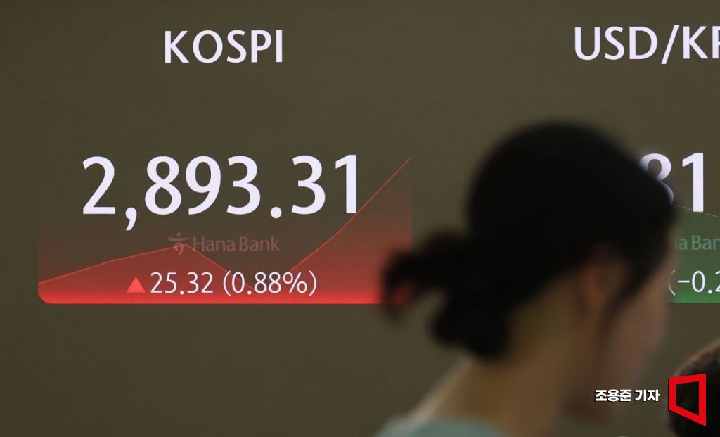코스피지수가 미 S&P 5600 돌파, 나스닥 최고치 경신에 힘입어 전 거래일(2867.99)보다 20.77포인트(0.72%) 오른 2888.76에 장을 시작한 11일 서울 중구 하나은행 딜링룸 전광판에 지수가 표시 되고 있다. 사진=조용준 기자 jun21@