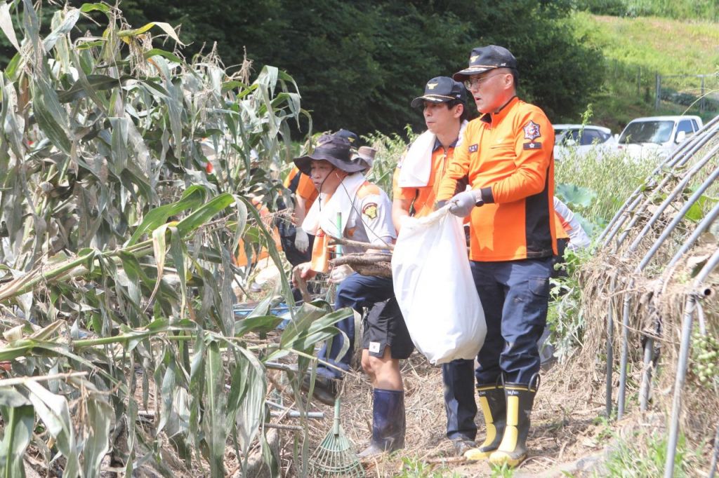 격려를 마친 강 본부장은 의용소방대원들과 함께 복구 활동에 힘을 보탰다.