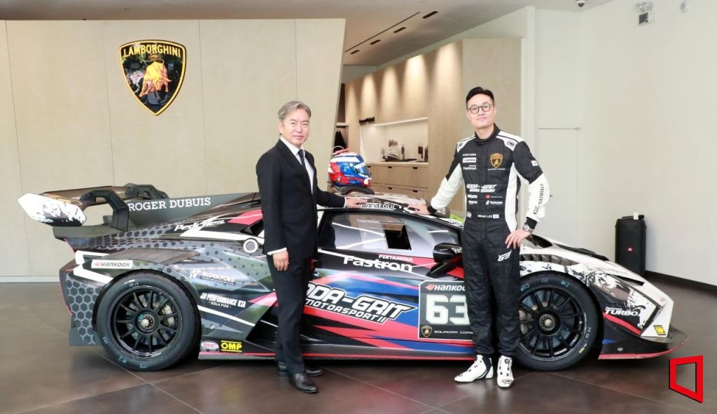 김종복 람보르기니 서울(SQDA 모터스) 대표(왼쪽)가 16일 서울 강남구 람보르기니 서울 센트럴 전시장에서 이창우 그릿모터테인먼트 대표 겸 치프 드라이버와 람보르기니 슈퍼 트로페오 에보2 앞에서 포즈를 취하고 있다. 올해로 11회를 맞이한 람보르기니 슈퍼 트로페오는 유럽, 북미, 아시아 3개 대륙에서 열리는 지구상에서 가장 빠른 레이싱 토너먼트 대회다. 참가 선수들이 람보르기니 슈퍼 트로페오 에보2 단일 모델로 경주를 펼치는 원메이크 레이스다. 사진=람보르기니 서울(SQDA 모터스) 제공