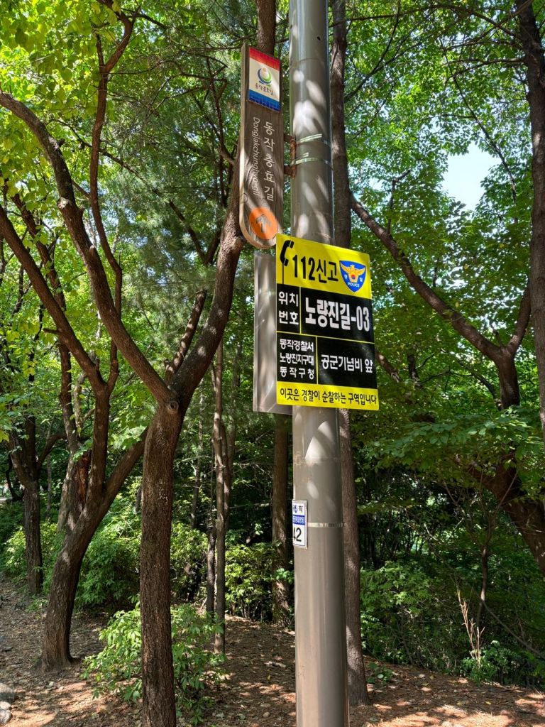 노량진길 112신고 현위치 안내표지판 설치 모습. 동작구 제공.