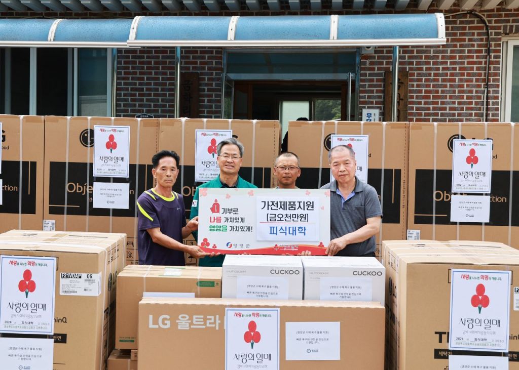 소식을 전해 들은 ‘피식대학’측은 피해 가정에서 시급하게 필요한 냉장고(23대), 세탁기(5대), 선풍기(25대), 밥솥(25대), 텔레비전(3대) 등 필수가전을 기부하며 하룻밤에 삶의 터전을 잃어 낙담하고 있을 영양군민들에게 온정을 전했다.