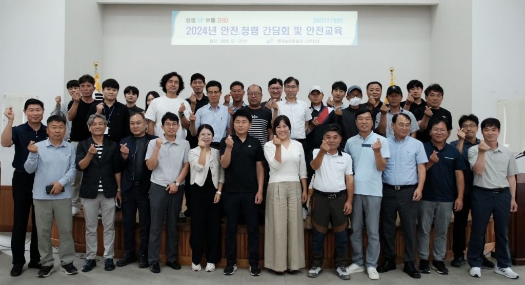 한국농어촌공사 나주지사(지사장 강수진)는 17일 지사 대회의실에서 19개 사업현장 공사감독 및 현장대리인 등 35여명이 참석한 가운데 ‘안전교육 및 청렴·안전 간담회’를 개최했다고 밝혔다.