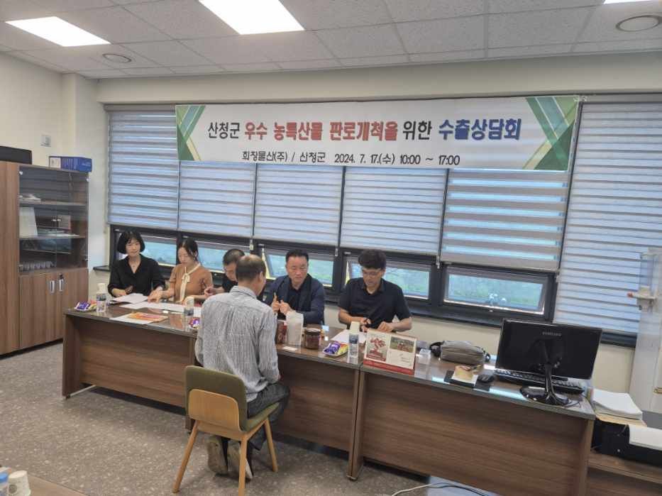 산청군이 15개 업체 70개 품목 수출 세부 사항 상담을 진행 하고 있다.