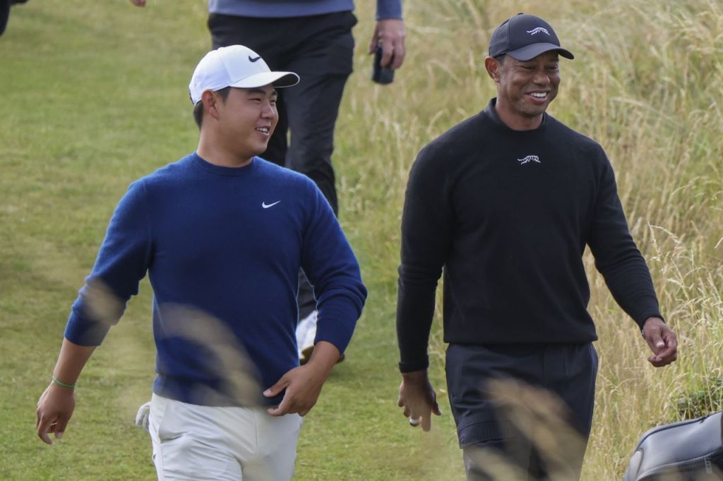 ‘PGA 흥행카드’ 김주형이 ‘최고(最古)의 메이저’ 제152회 디 오픈(총상금 1700만 달러)을 앞두고 ‘골프황제’ 타이거 우즈(미국)와 몸을 풀었다.