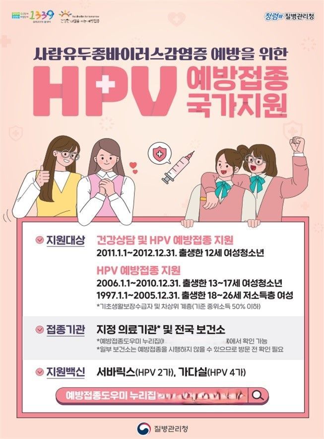 여름방학 여성청소년 HPV 무료 예방접종 안내.