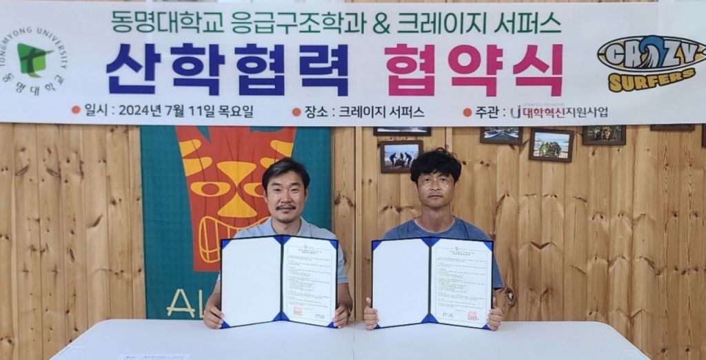 크레이지서퍼스 박현수 대표는 “동명대와 협력해 보다 안전하고 즐거운 해양 레저활동을 제공할 수 있어 기쁘다”며 “대학과 함께 부산 지역 해양레저산업 발전에 기여할 수 있기를 기대한다”고 말했다.
