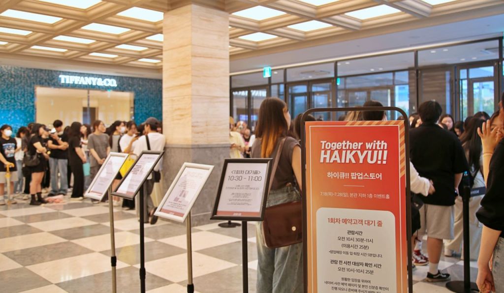 1회차 사전예약 고객 대기 공간인 본관 1층 광장에서는 전날 오후 6시부터 대기가 시작돼 하이큐의 인기를 실감케 했다. 입장이 시작된 후 팝업스토어는 고객들로 인산인해를 이뤘으며 팝업 오픈 5분 만에 한정상품 굿즈인 캐릭터 피규어가 모두 소진되는 등 굿즈 품절 대란을 일으켰다.
