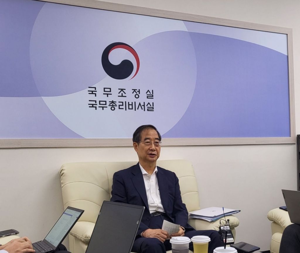 한덕수 국무총리가 18일 세종청사에서 기자들을 만나 발언하고 있는 모습. 사진=송승섭 기자
