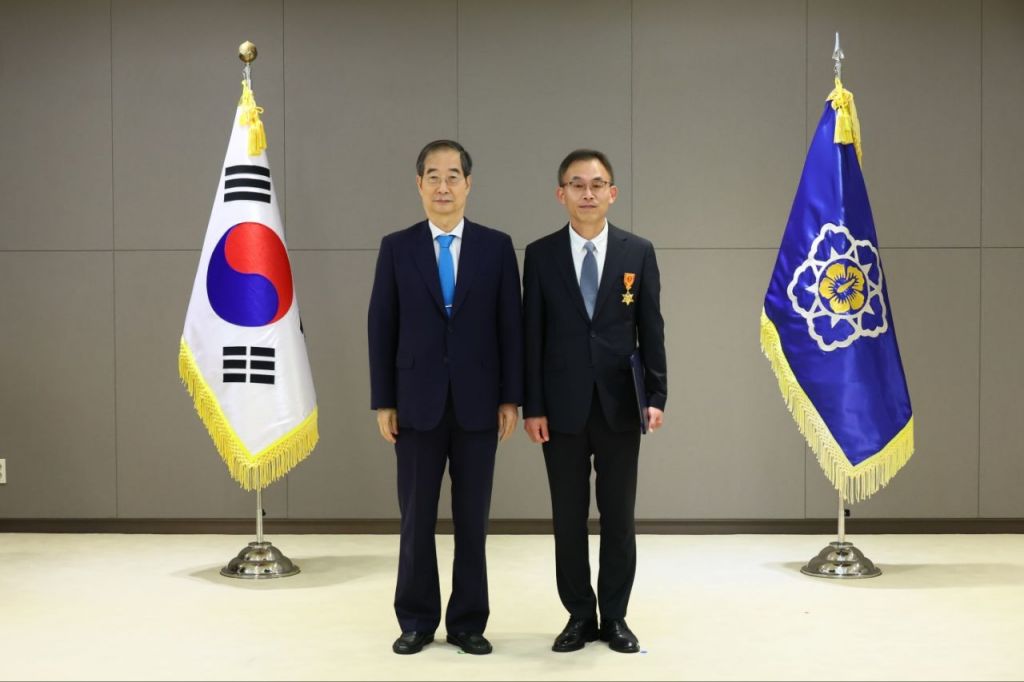 한덕수 국무총리(왼쪽)로부터 훈장을 받은 강문영 주무관