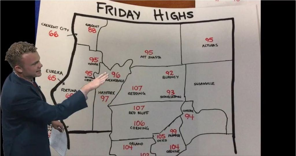 출근길에 이러한 상황을 알게 된 KRCR의 프레스턴 도니언 기상캐스터는 커다란 종이에 캘리포니아 지도를 그리고 지명과 날짜 정보를 표시하는 식으로 방송을 진행했다.