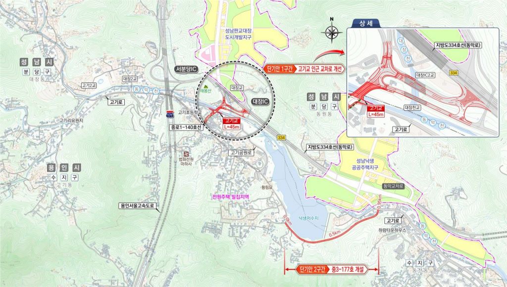 용인시는 단기 1구간 고기교와 중로 1-140호선, 단기 2구간의 고기교 우회도로인 중로 3-177호선의 신설을 동시에 추진하기로 했다. 이에 따라 고기교는 준공 후 40여 년 만에 확장·재가설 절차를 밟게 됐다.