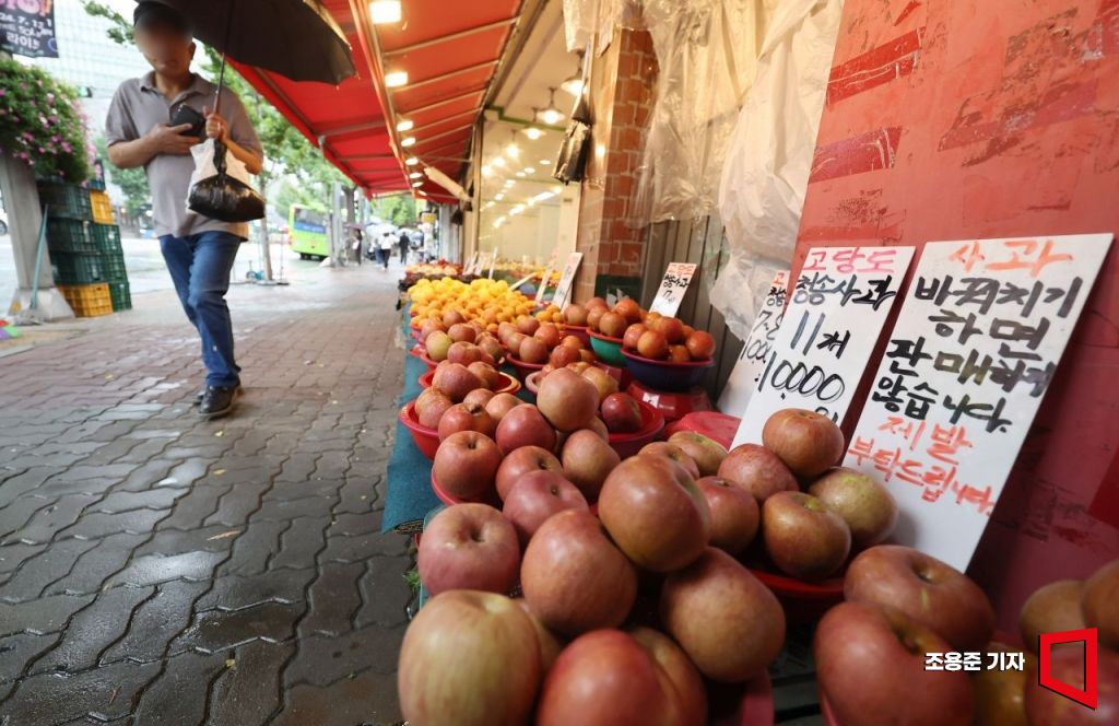 우선 지난해 생산량 감소로 가격이 높았던 사과는 7월 중순부터 썸머킹과 쓰가루(아오리) 등 햇사과 출하가 시작되고, 2023년산 막바지 저장물량이 출하되면서 가격이 하락세로 전환됐다. 농식품부에 따르면 6월 하순 사과 10개 소매가격은 3만4066원에서 이달 중순 3만697원으로 낮아졌다. 다만 전년 대비로는 8.6% 높은 수준이다.