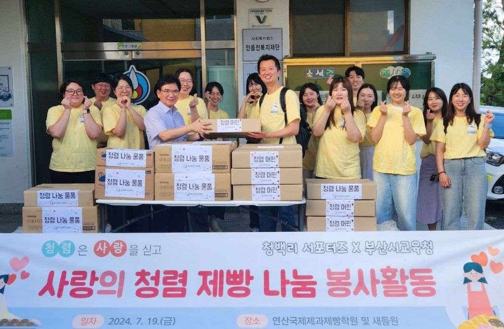 청백리 서포터즈와 시 교육청 직원 등 30여명은 지난 19일 오후 아동복지시설 새들원을 찾아 ‘사랑의 청렴 제빵 나눔’ 봉사활동에 나섰다.