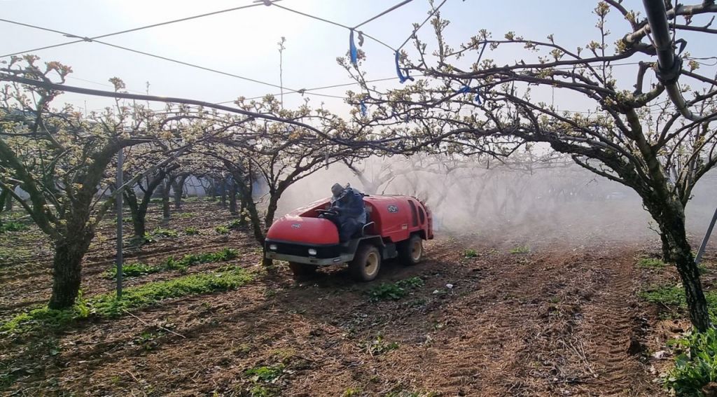 과수화상병 예방을 위한 방제를 하고 있는 모습.(자료사진)