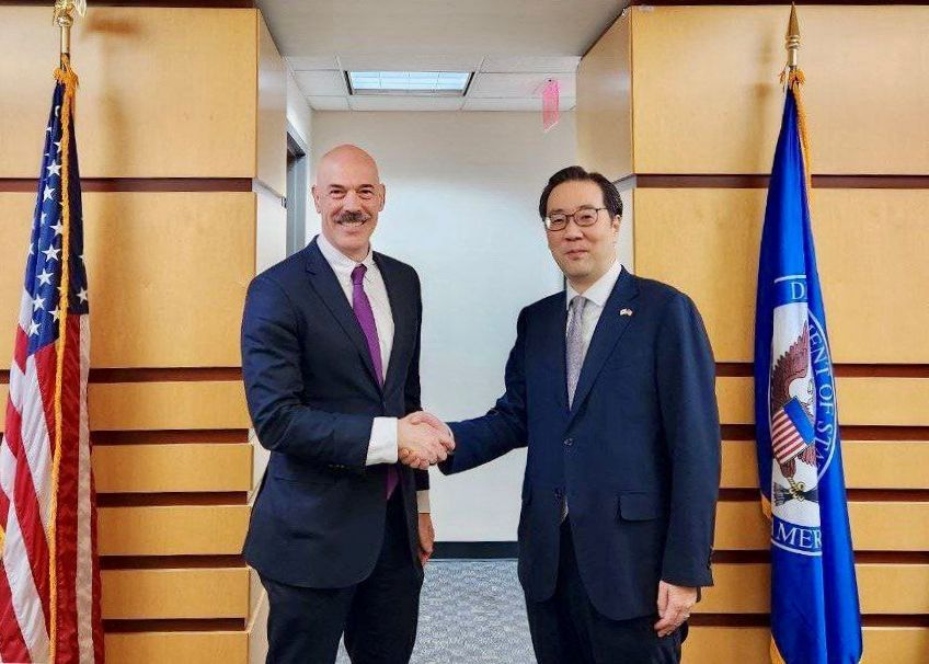 이준일 외교부 한반도정책국장이 22일(현지시간) 미국 워싱턴DC에서 세스 베일리 미 국무부 대북특별부대표와 만나 한반도 정세와 북핵 대응방안에 대해 논의했다. [사진제공=외교부]