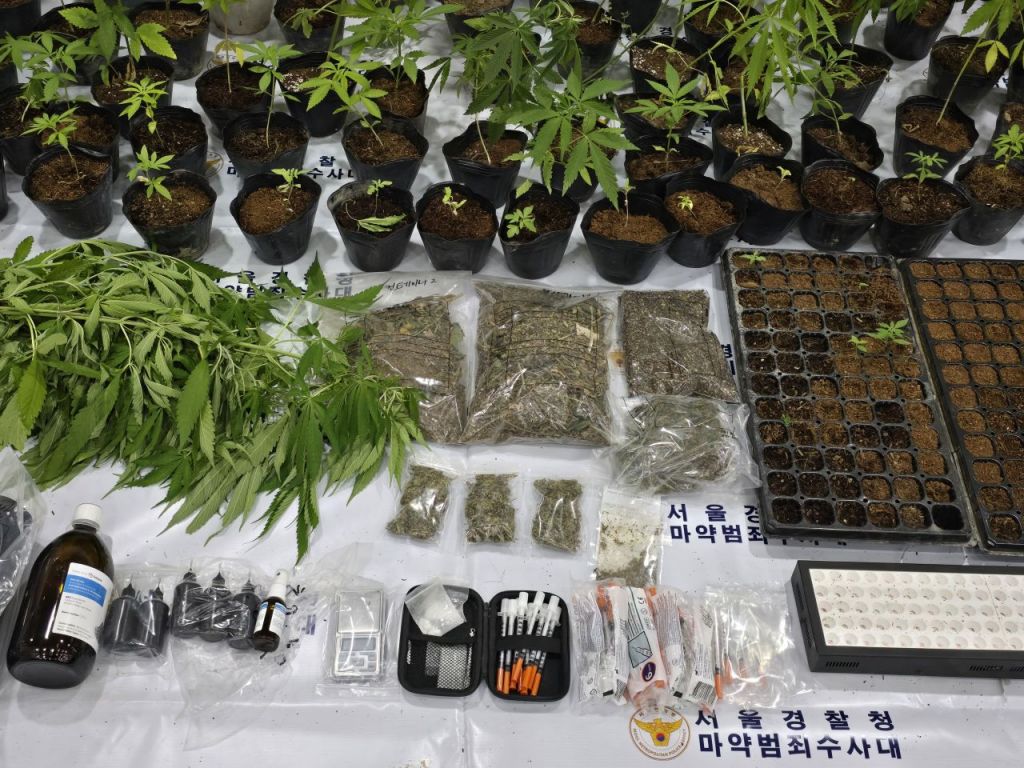 아울러 경찰은 대마초 17.2㎏(액상 대마 4.9㎏ 포함)을 포함한 생육 대마 205주, 필로폰 등 마약류 약 26억8000만원어치를 압수하고 관련 범죄에 대한 수사를 이어갈 방침이다.