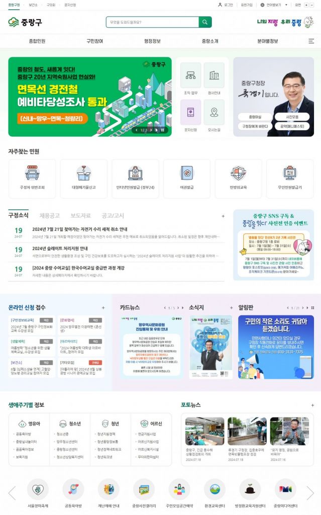 류경기 중랑구청장은 "홈페이지를 통해 구민이 가장 필요로 하는 정보를 적시에 제공하기 위해 지속적으로 노력할 것"이라며 "빅데이터 분석 등 과학 행정을 기반으로 구민의 요구사항을 반영하고 눈높이에 맞는 콘텐츠를 제공하겠다"고 말했다.