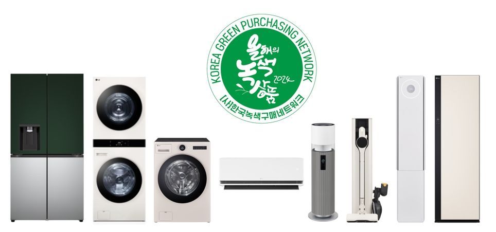 이밖에 코드제로 A9S 무선청소기, 퓨리케어 정수기, 디오스 광파오븐, 스타일러, 디오스 식기세척기, 디오스 김치냉장고, 휘센 뷰 에어컨, 디오스 컨버터블 냉장고, 트롬 워시타워, 트롬 워시콤보, 통돌이 세탁기, 디오스 인덕션, 퓨리케어 하이드로타워가 올해의 녹색상품으로 선정됐다.