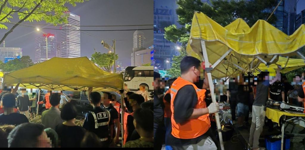 지난 3월, 5월에 이은 이번 3차 단속에서 수사협의체 35명은 5개 노란천막에서 유명 상표 위조상품 102점을 압수하고, 위조상품을 판매한 1명을 상표법 위반 혐의로 불구속 입건했다. 또한 도로점용 허가증을 미부착한 상태에서 의류 등을 판매한 노란천막 14개를 철거 조치했는데 이 과정에서 상인들의 격렬한 저항이 이어지기도 했다.
