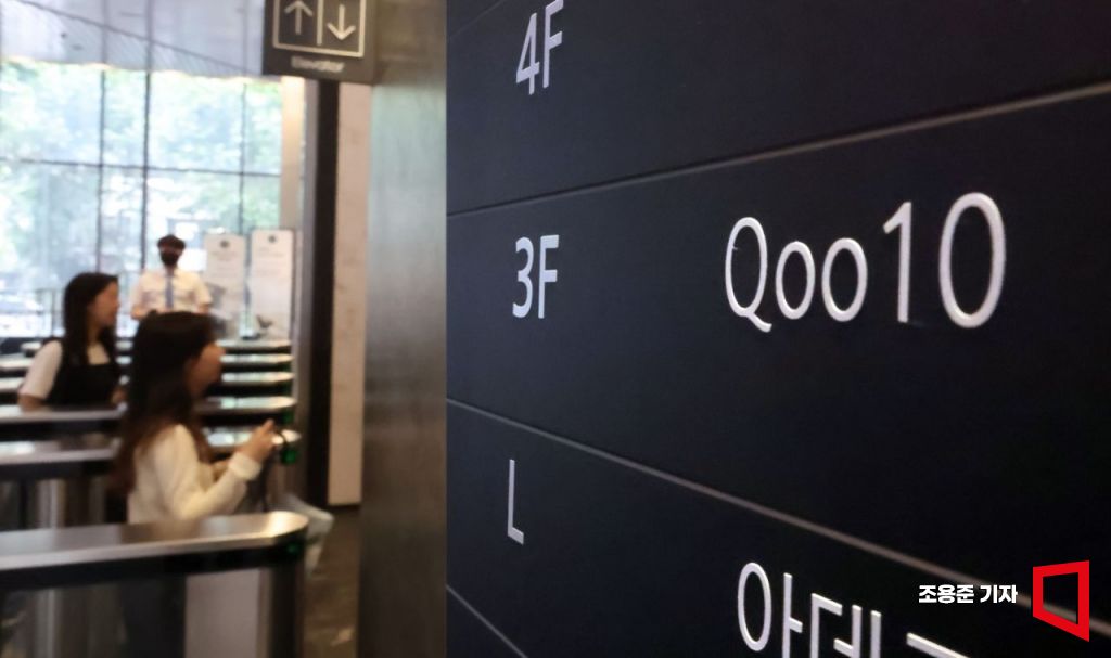 싱가포르에 본사를 둔 큐텐그룹이 운영하는 온라인 쇼핑몰 위메프에서 시작된 정산 지연 사태가 티몬으로 확산되고 있다. 24일 서울 강남구 한 건물에 큐텐 안내판이 붙어 있다. 사진=조용준 기자 jun21@