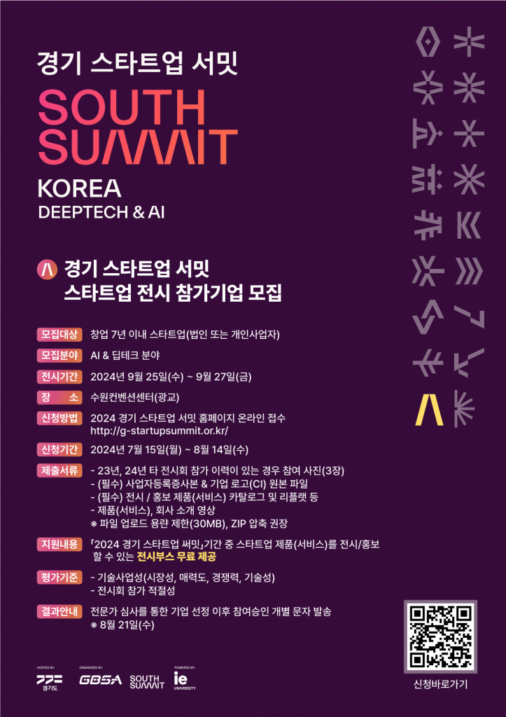 경과원은 오는 9월25일부터 27일까지 수원컨벤션센터(광교)와 스타트업 캠퍼스(판교)에서 ‘2024 경기 스타트업 서밋’을 개최하기로 하고, 행사에 참가할 스타트업을 모집한다고 24일 밝혔다.
