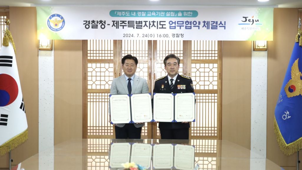 경찰청은 24일 제주특별자치도와 ‘제주 경찰 교육기관 추진을 위한 업무협약식’을 개최했다고 밝혔다.