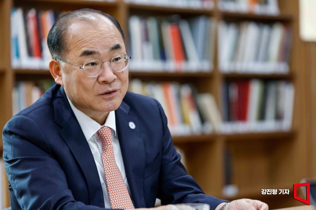 최재원 부산대학교 총장이 22일 부산대학교 박물관 가온나래에서 인터뷰 하고 있다. 사진=강진형 기자aymsdream@