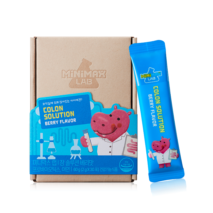 동아제약의 미니막스 랩 장 솔루션은 어린이의 연약한 장에 적합한 건강기능식품이다.