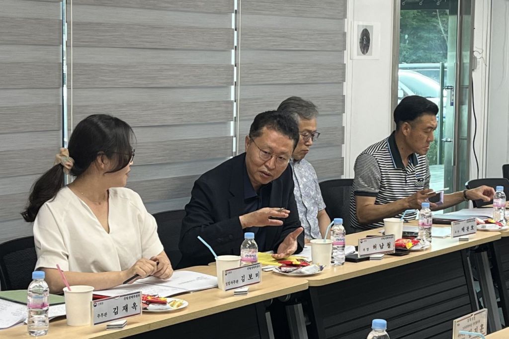 허남철 산림청 산림생태복원과장(왼쪽 두 번째)이 25일 열린 전문가 토론회에서 '도동 측백나무 숲' 복원 방안에 관한 의견을 공유하고 있다. 산림청 제공