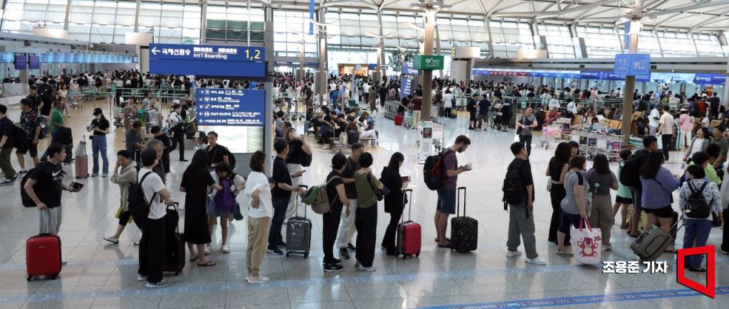 본격적인 여름 휴가철이 시작된 26일 인천국제공항 제1여객터미널 출국장에 해외여행을 떠나는 인파들로 북적이고 있다. 사진=조용준 기자 jun21@