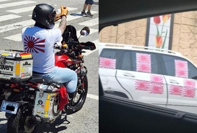 최근 일본의 군국주의를 상징하는 전범기인 욱일기를 붙이고 도로를 누빈 벤츠 차량이 입길에 오른 가운데, 이번에는 욱일기 티셔츠를 입은 라이더가 등장해 논란이 되고 있다.