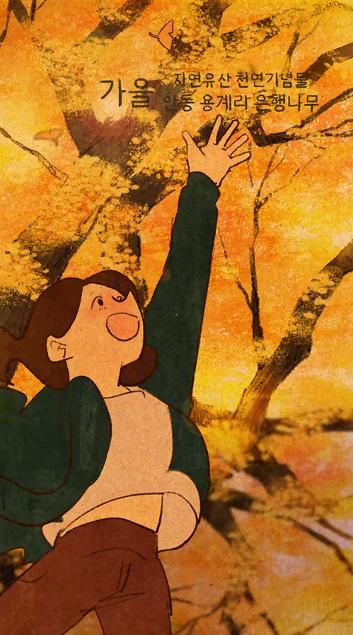 30초 내외의 짧은 만화 형태다. 사계절과 어우러지는 김해 천곡리 이팝나무와 안동 용계리 은행나무, 두루미(이상 천연기념물), 담양 명옥현 원림(명승) 등이 박다미 씨 특유의 섬세하고 서정적인 그림체로 표현됐다.