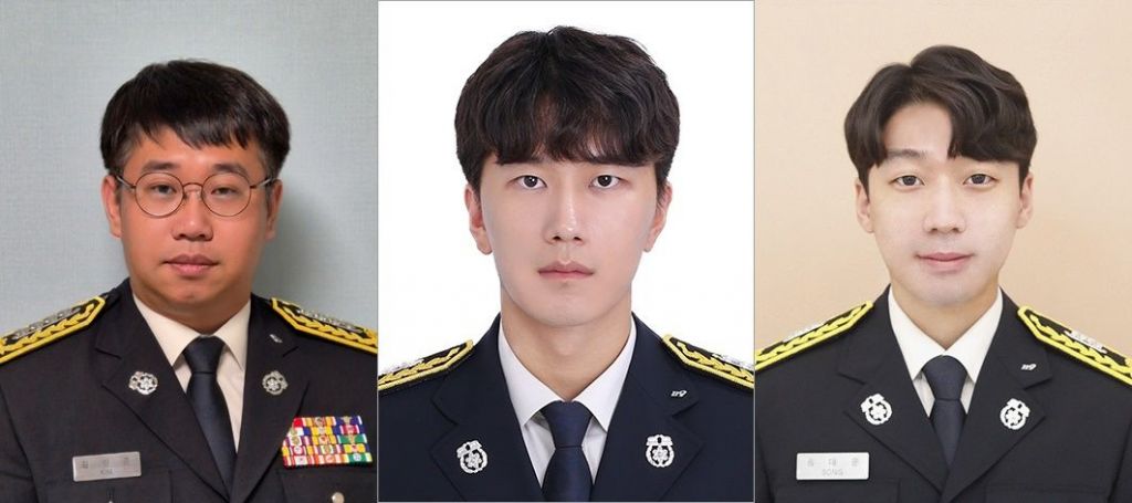 공주소방서 김성준, 안현준, 송대운 대원이 대전 야구장 화재를 초기에 진압해 큰 피해를 막았다. / 충남도