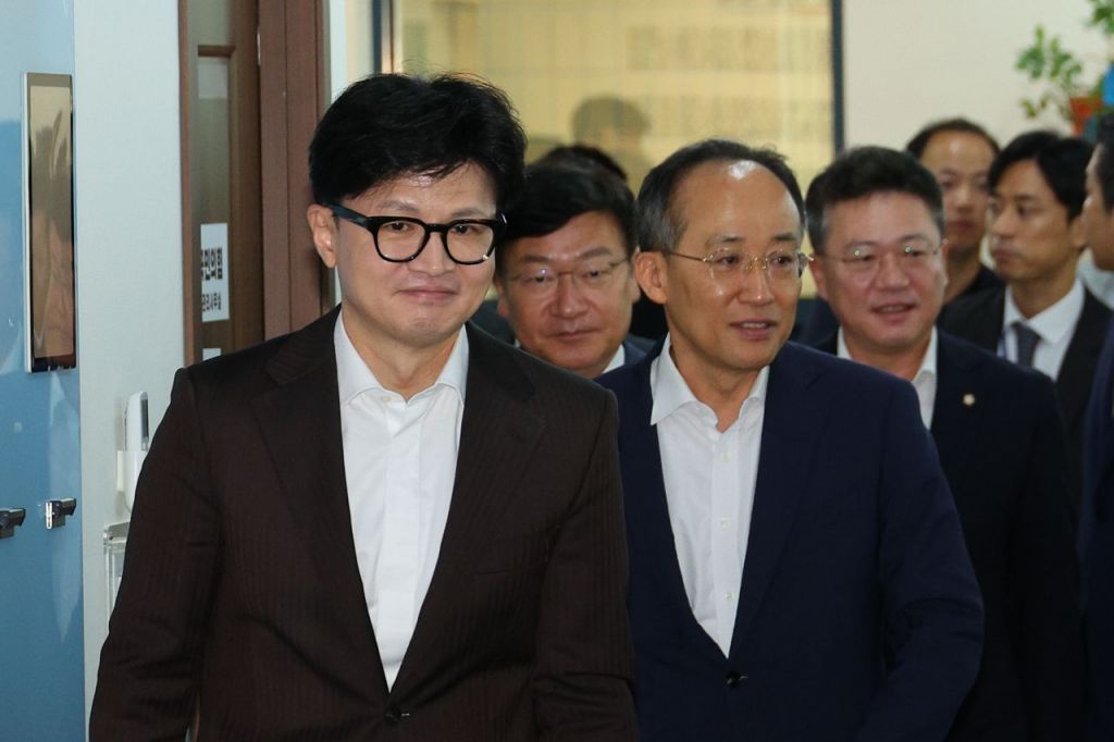 한 대표는 민주당이 더 강화된 채상병특검법을 발의하겠다고 한 것에 대해선 "이렇게 숫자가 많다고 해서 기본적인 상식과 법체제를 무시하고 국회를 공전시키고 민생을 가로막는 행위를 국민들이 언제까지 지켜볼지 저도 국민과 함께 주시하겠다"고 답했다. 제삼자 특검법을 추진하겠다고 한 생각에도 "입장이 달라진 것이 없다"며 "지금 돌아가는 상황들을 감안할 때 그게 하나의 충분한 대안이 될 수 있다는 제 입장에 변함이 없다. 당내 민주적인 절차를 통해 충분히 설명하겠다"고 강조했다.