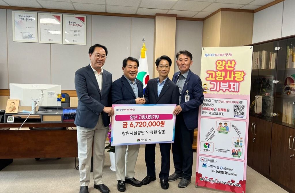 경남 창원시설공단은 26일 양산시에 고향사랑 기부금 672만원을 기탁했다.