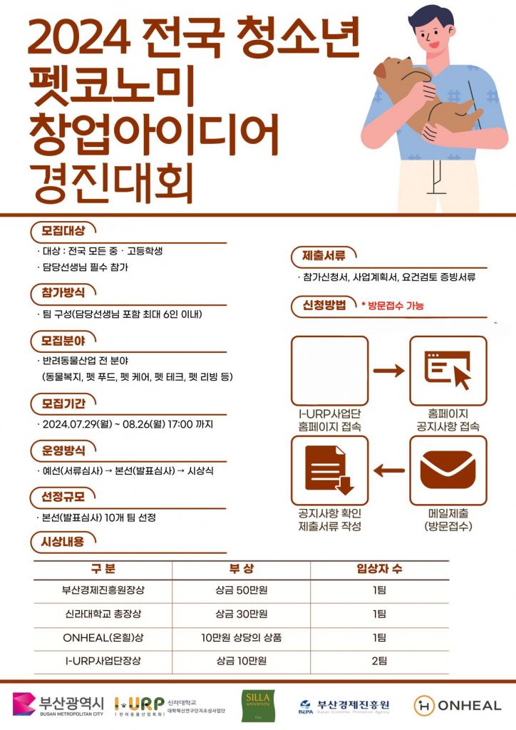 신라대학교(총장 허남식) I-URP사업단이 ‘2024년 전국 청소년 펫코노미 창업아이디어 경진대회’ 참가자를 모집한다.