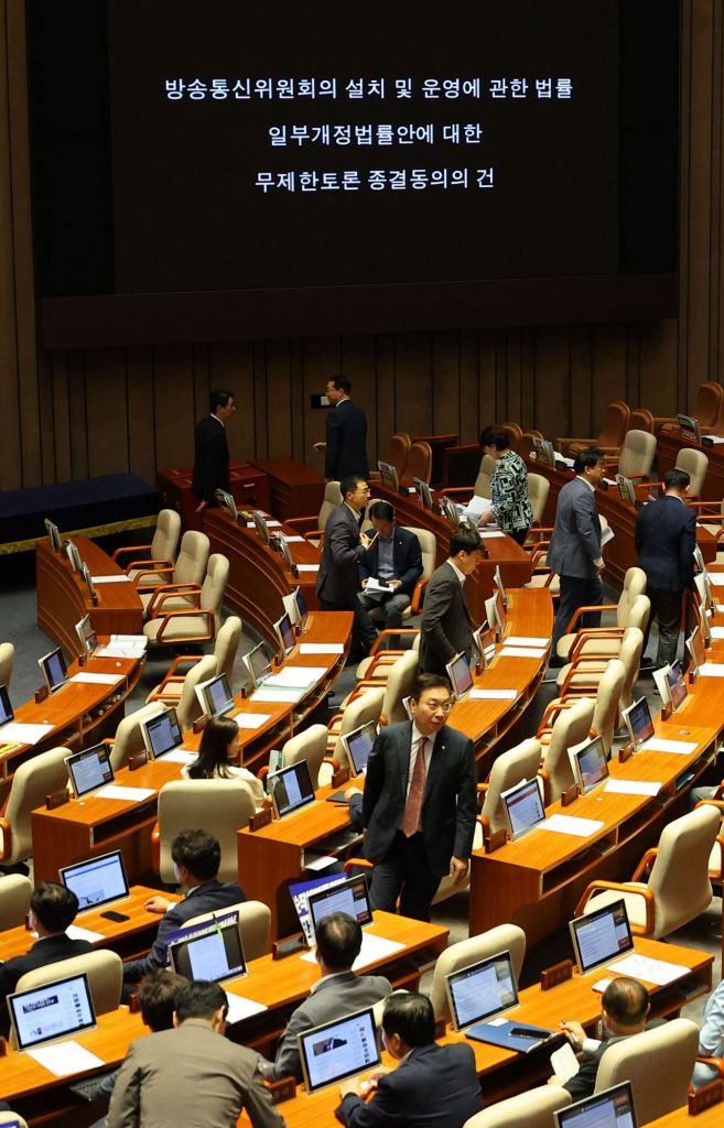 토론 종결 직후 방통위법은 곧바로 본회의 표결에 부쳐져 재석 183명 전원 찬성으로 가결됐다. 야당 의원들만 표결에 참석했고, 국민의힘 의원들은 필리버스터 종료 직후 이에 반발하며 퇴장했다.