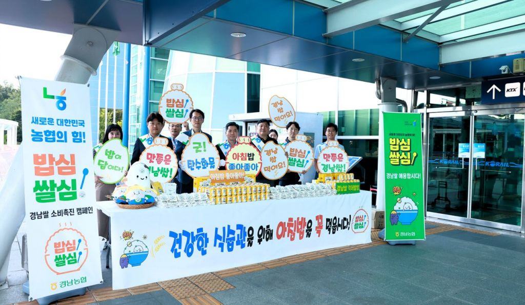 경남농협은 29일 KTX창원중앙역에서 상행선 승객 약 500여명을 대상으로 우리쌀로 만든 식혜와 떡을 나눠주며 범국민 아침밥 먹기 캠페인 활동을 펼쳤다.