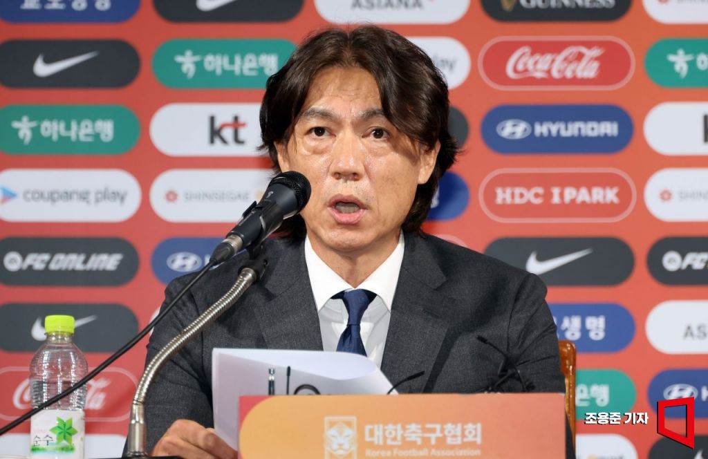 홍명보 한국 축구 국가대표 감독이 29일 서울 종로구 축구회관에서 열린 취임기자회견에서 향후 일정 등 팀 운영 방안에 대해 발언하고 있다. 사진=조용준 기자 jun21@
