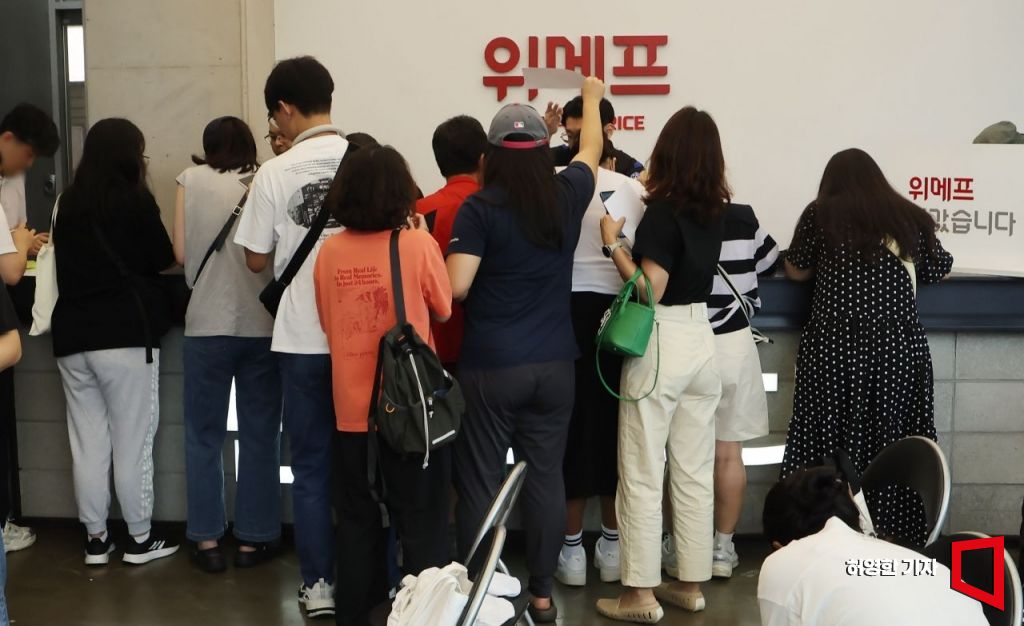 티몬과 위메프의 판매자 정산 지연 사태로 소비자들의 피해가 커지면서 구매 고객들이 25일 서울 삼성동 위메프 본사로 찾아가 환불 신청 접수를 하고 있다. 사진=허영한 기자 younghan@