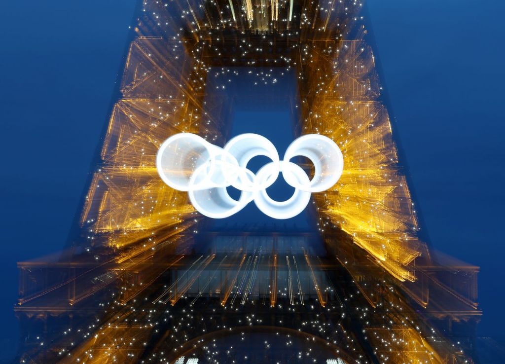 지난 24일 프랑스 파리 에펠탑의 오륜마크를 '주밍'기법으로 촬영한 모습. [사진출처=연합뉴스]