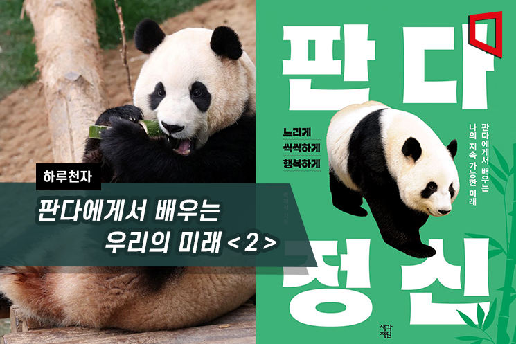 과거 판다의 조상이었던 동물의 손 모양은 대나무를 먹기에 불리한 곰 손 구조였다. 엉뚱하게도 손목뼈의 모양이 변하는 방식이었지만, 그래도 꾸역꾸역 버티면서 적응한 끝에 불리한 특징을 넘어서서 결국 귀여운 모습이 되었다. 힘든 일, 불리한 일이 있어도 어떻게든 적응하려고 하다가 귀여운 모습이 되는 것, 나는 이런 것이 어쩌면 판다의 인기 비결이고, 판다 정신이라고 생각한다.