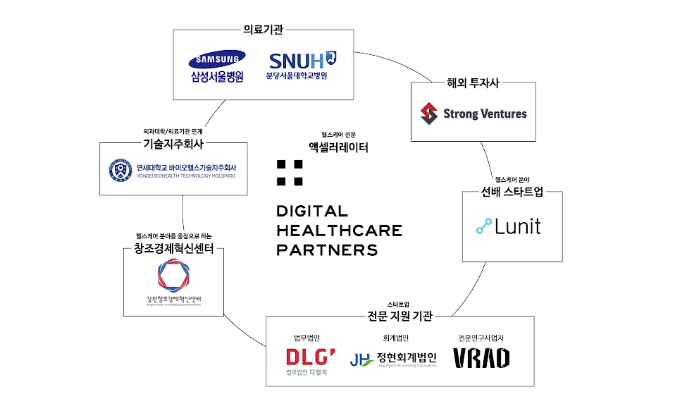 이번 DHP 컨소시엄은 헬스케어 스타 업의 발굴, 투자, 육성에 특화돼 관련 분야 전문성을 갖춘 파트너들로 구성되었다. 의료기관 중에는 삼성서울병원과 분당서울대병원 창업보육센터가 참여했고, 세브란스병원과 연계된 바이오헬스케어 특화 기술지주회사인 연세대 바이오헬스기술지주회사를 비롯해 강원창조경제혁신센터, 루닛, 미국 벤처캐피털(VC)인 스트롱벤처스 등이 참여했다.