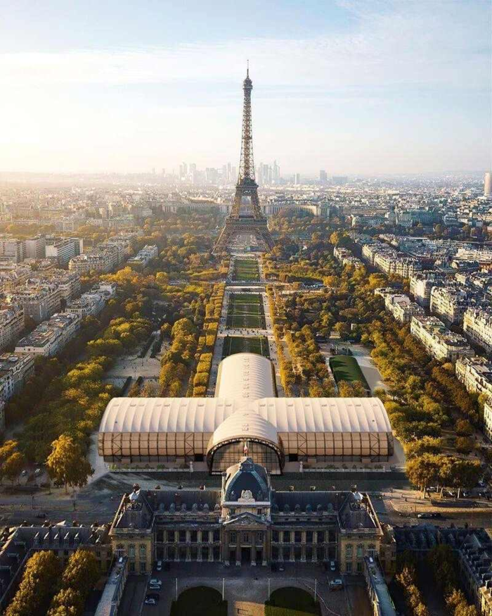 프랑스는 파리올림픽 개최를 위해 파리 에펠탑과 마주보는 위치에 목조건축 '샹드 마르스 아레나(레슬링 경기장)'를 신축했다. 사진=Wilmotte & Associ?s 제공